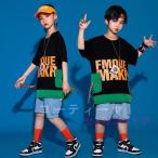 キッズダンス衣装 ヒップホップ 男の子 女の子 男女兼用 韓国子供服 HIPHOP 夏 ジャズダンス ステージ衣装 jazz 練習着 上下セット 半袖 Tシャツ