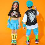 HIPHOP ダンス 衣装 キッズ 白 青 キッズダンス衣装セットアップ ヘソ出しトップス 韓国 ガールズ