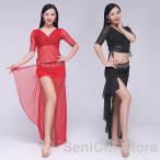 ダンスウェア ベリーダンス衣装4色 へそ出しダンススカート ステージダンス教室 ダンス発表会 レッスン着 練習着 セットアップ 見せパン付き