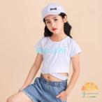 春夏新作 女の子 ヘソ出しトップス tシャツ 半袖 無地 クロス トップス 子供 キッズ ダンス衣装 ジャズダンス ヒップホップ HIPHOP ステージ服 演出服 2色