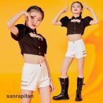 ダンス 衣装 キッズ 韓国 夏 ジャズダンス チアガール ガールズ 黒 白 半袖 トップ ショーツ セットアップ へそ出し ヒップホップ 応援団 HIPHOP 練習着