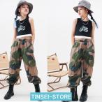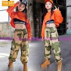 迷彩パンツ ジャズダンス キッズ ダンス衣装 ヒップホップ 上下 セットアップ 子供 サルエルパンツ トップス HIPHOP 長袖 ステージ衣装 練習着 ステージ衣装