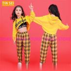 チェック柄 ジャズダンス セットアップ キッズ ダンス衣装 ヒップホップ HIPHOP JAZZ 男の子 女の子 トップス 上着 ダンスパンツ 練習着 体操服 ステージ衣装