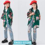 ヒップホップダンス衣装 トップス HIPHOP ダンス 衣装 キッズ ジャケット 原宿系 チェックパンツ ジャズダンス衣装 練習着 体操服 チェック柄 シャツ