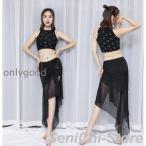 ベリーダンス衣装レディース 上下2点セットアップ 系トップス ロングスカート インナーパン付きバックレスダンス練習着 レッスン着