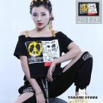ダンス衣装 スパンコール 衣装 ロック丈 ヒップホップ ガールズ HIPHOP ダンストップス キラキラ パンク ジャズ ステージ衣装 舞台 Tシャツ 大きいサイズ