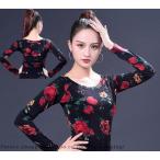 ラテンダンス 社交ダンス トップス 花柄 レディースダンス衣装 ワルツ モダンダンス チャチャ タンゴ フラメンコ衣装 パーティー用 レッスンウェア