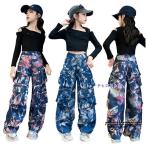 キッズダンス衣装 ヒップホップ セットアップ HIPHOP 長袖 シャン 花柄 パンツ ズボン 男の子 女の子 子供服 ジャズダンス ステージ衣装 練習着 体操服