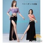 ベリーダンス衣装 セットアップ 中華風大人用ダンス衣装 花柄 肩出しレディース エレガント 五分袖トップスレッスン着 ダンス衣装