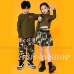 ダンス 衣装 キッズ ガールズ ジャズダンス ヒップホップ HIPHOP チアガール 迷彩 アーミーグリーン 女の子 男の子 セットアップ 練習着