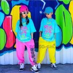 キッズダンス衣装 夏 ヒップホップ 韓国 HIPHOP 半袖 トップス ピンク 黄 パンツ 男の子 女の子 チアガール 練習着 演出服 応援団 ジャズダンス