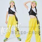 キッズ ダンス 衣装 韓国 ガールズ スプライシング 黒 白 トップス パンツ 黄 セットアップ 夏 ジャズダンス ヒップホップ ダンスパンツ HIPHOP 練習着
