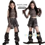 ダンス演出服 女の子 ブラウン 4点セット フード付き トップス デニム 手袋 レッグウォーマー JAZZ ダンス服 ジャズ ヒップホップ 舞台服 110-170cm