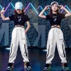 ダンス衣装 キッズ 韓国 かっこいい 黒 白 派手 パンツ セットアップ ヒップホップ へそ出し t ショット丈 トップス 女の子 練習着 発表会 110 170cm
