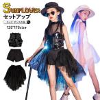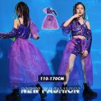 キッズ ダンス衣装 ヒップホップ セットアップ 子供服 チアガール ジャズ ダンス衣装 パープル スパンコール スカートセット チュール ジュニア ステージ 応援団