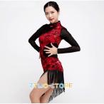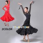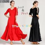 社交ダンス モダンドレス ラテン衣装 ワルツ タンゴ ワンピース ルンバ サンバ ラテンダンス レッド 黒 社交ダンスドレス