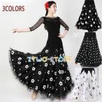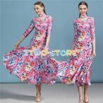 レディースダンス衣装 ステージ衣装 ラテンダンス ワルツ ダンスウエア 花柄 練習着 ワンピース 練習着 競技用大きい裾 社交ダンス モダンダンス