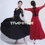 【オープン記念!5%OFFクーポン・10/24まで】社交ダンス 競技用のドレス モダンドレス ダンスウェア ロング丈ワンピース ラテンダンスドレス 社交ダンス衣装 社交ダンス 練習着 大きい裾 ワルツ ステージ衣装 レッスン着 フラメンコ 舞台 ルンバ サンバ ダンス モダン衣装