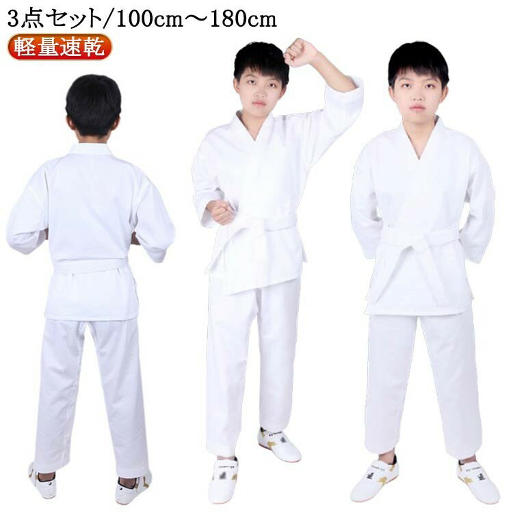 【送料無料】中学生 空手着 セット 大人 100-180cm 白帯 空手衣 3点セット 空手道着 空手 ジュニア 初心者 道着 男女兼用 空手スーツ 子ども