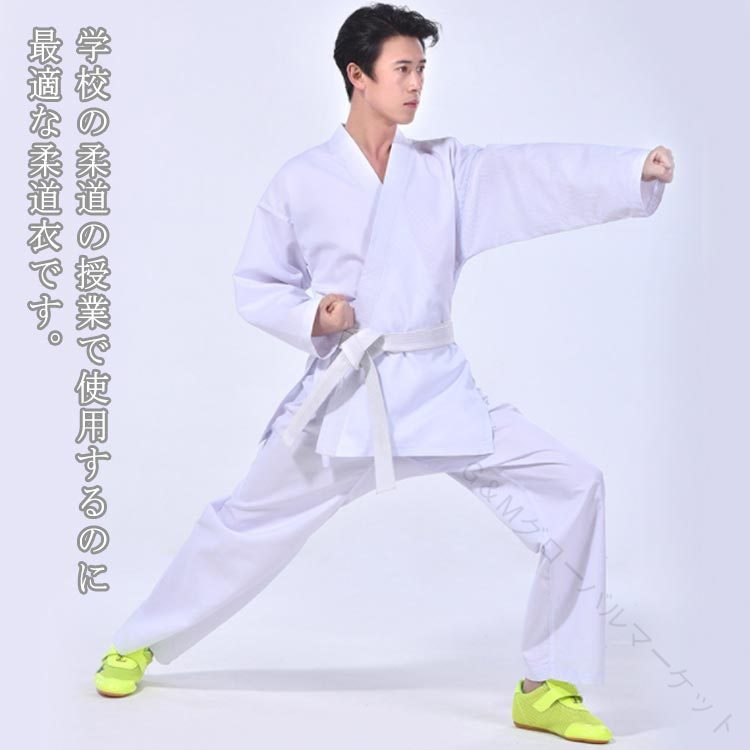 柔道着 授業用 空手着 道着 空手衣 合気道 道着 道衣 中学性 ジュニア 上下セット ズボン 上着 帯付き 練習着 白帯 高校生 体育授業 柔道授業 中学授業 高校授業 初心者 男女兼用 程よい耐久性で快適な着心地の柔道空手兼用軽量練習着