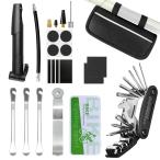 Style:23点パンク修理キット(空気入れ付き) 自転車パンク修理 工具セット 23点 Oziral自転車用 タイヤ修理キット 強化粘着 タイヤ補修パッチ 16-in-1多機能マ
