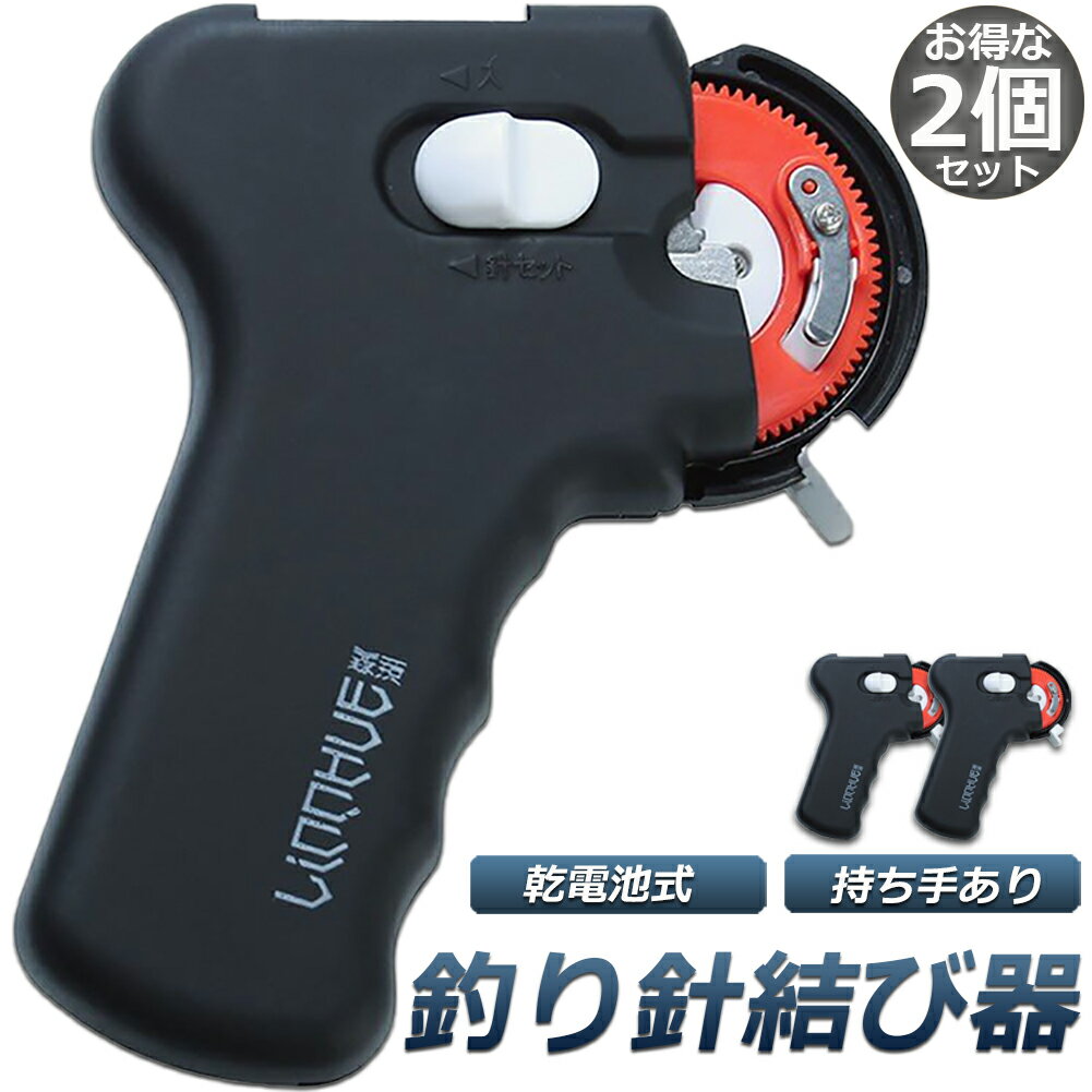 釣り 針 結び器 針結び器 自動 乾電池式 2個セット 滑り止め 針仕掛け結び器 釣具 釣りフック アウトドア 夜 コンパクト ライン 仕掛け ブラック 薄型 海釣り 船釣り 川釣り 釣り用品 送料無料