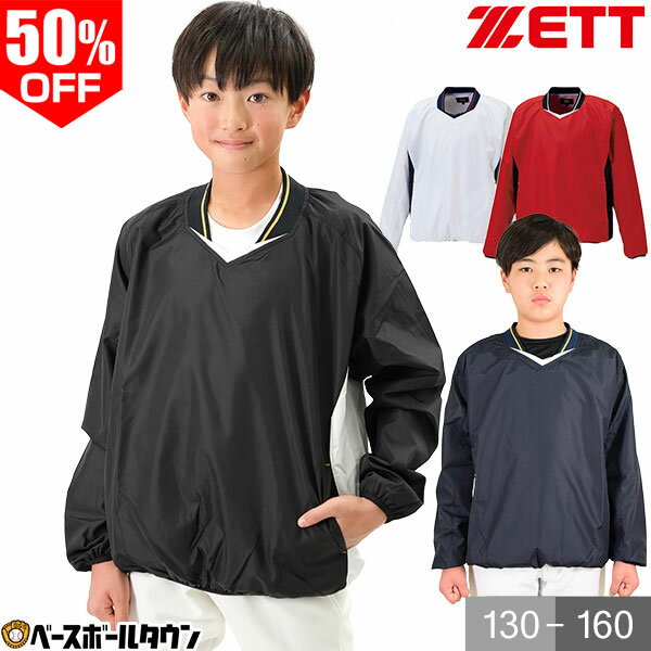 50%OFF ZETT ゼット 野球 Vジャン ジュニア 長袖 防風 撥水 透湿 シャカシャカ Vネックジャンパー ウィンドジャケット 防寒 ウェア 秋冬 子ども 軽量 フルジップ 保温 トレーニング スポーツ 大きいサイズ 少年用 BOV331J 野球ウェア 子供服