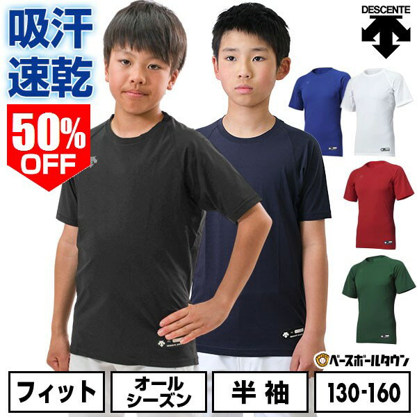 50%OFF 野球 アンダーシャツ ジュニア 半袖 丸首 ゆったり デサント DESCENTE 軽量 吸汗速乾 ストレッチ 小学生 中学生 学童 少年野球 中学野球 部活 クラブチーム JSTD721B JSTD-721B 【365日あす楽対応】 インナーシャツ スポーツウェア