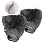 キャッチボール 大人少年用 野球 グローブ 人工皮革製 軟式 キャッチボール練習 セット 右投げ用 左手着用 初心者向け (ブラック, 10.5+12