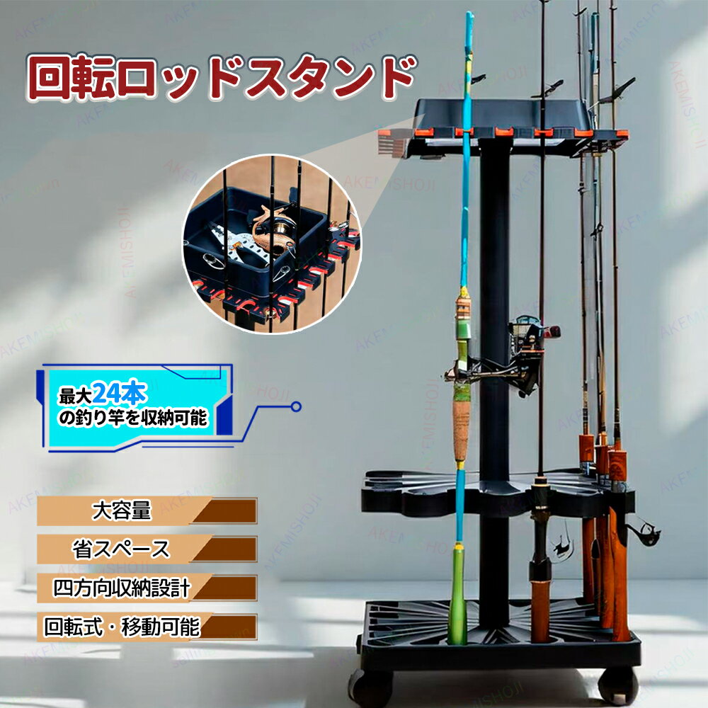 p20倍15日迄★ロッドスタンド 釣り竿用 回転ロッドスタンド 釣り竿立て 24本立て 竿 立て 釣り竿立て 釣り具収納 整理 ロッドホルダー ロッドラック 釣竿ラック キャスター付き 移動便利