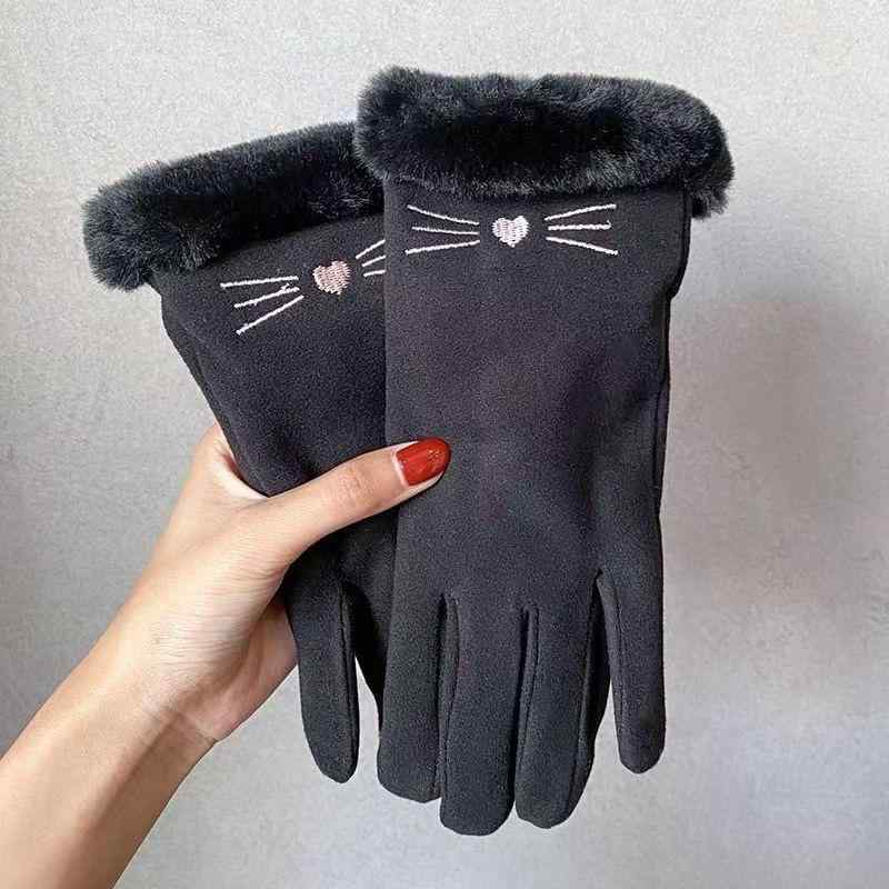 手袋 男性用 女性用 冬用 防寒 グローブ 裏起毛 暖かい スマホ対応 自転車用 秋冬 猫柄 灰色 黒色 ピンク系(x200)