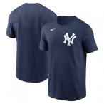NIKE ナイキ MLB 半袖Tシャツ メンズ ニューヨーク・ヤンキース ヒューズ ワードマーク コットンティー 紺 ネイビー 正規品 N199-44B-NK-0U5