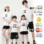 親子コーデ 親子 ペアルック tシャツ 半袖 春 夏 リンクコーデ 親子 セット パパ パンダ 動物柄 親子 ペアtシャツ 子供 ハハ 黒 白 グリーン パープル トップス
