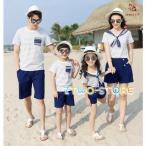 親子ペアルック ボーダーTシャツ+ショートパンツ上下セットアップ マリン風親子コーデ 親子お揃い 子供服 日常 海リゾート風カジュアル衣装 在
