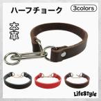ハーフチョーク 本革 犬 首輪 チェーン 中型犬 大型犬 トレーニング用 しつけ 引っ張り癖