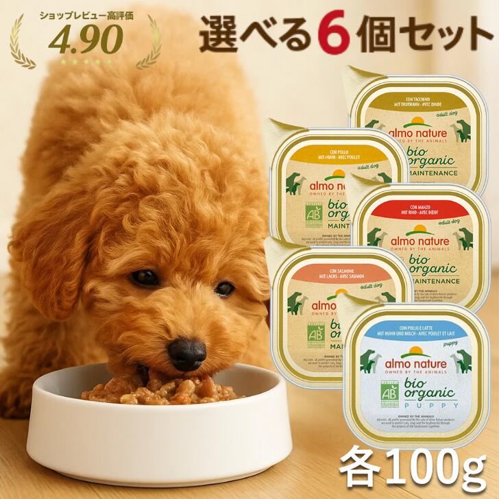 【20日~27日ブラックフライデー☆10%OFFクーポン】 アルモネイチャー オーガニック 犬用 選べる6個セット (サーモン/チキン/ターキー/ビーフ/仔牛) オーガニックパテ 成犬用 総合栄養食 ウェットフード デイリーメニューシリーズ 犬用 缶詰 無添加 子犬用 成犬用