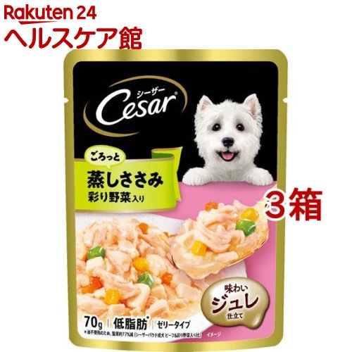 シーザー ごろっと蒸しささみ 彩り野菜入り 成犬用 ウェットフード(70g*16袋*3箱セット)【シーザー(ドッグフード)(Cesar)】