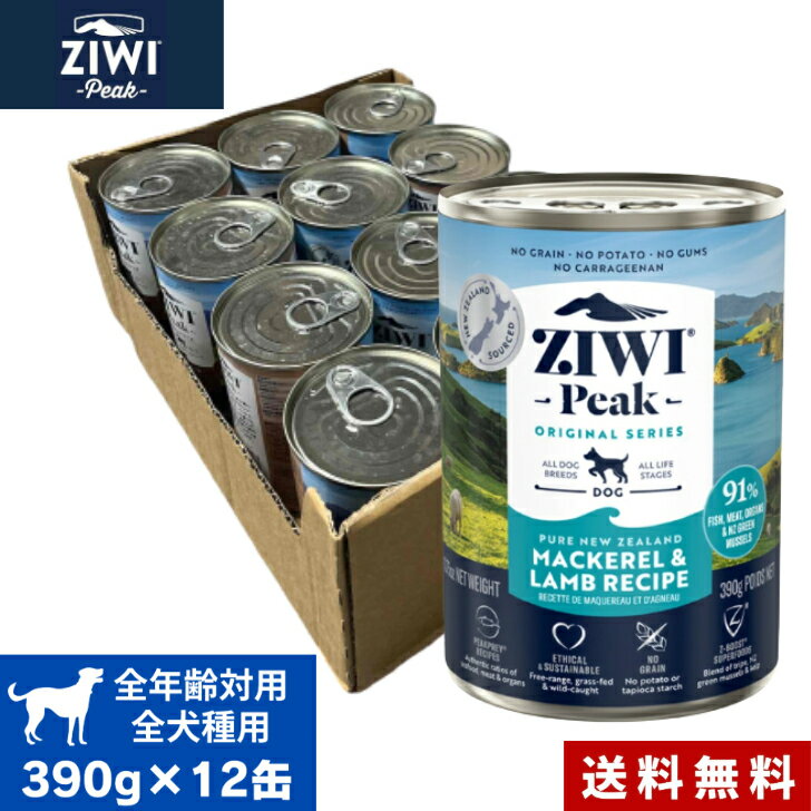 ZIWI ドッグ缶 マッカロー&ラム 390g 12缶セット ケース 正規品 ジウィピーク プレミアム ウェットフード ドッグフード 無添加 犬 缶詰 オールライフステージ 全犬種用 超小型犬 小型犬 中型犬 大型犬 子犬用 成犬用 高齢犬用 犬用 ペットフード 健康管理 送料無料
