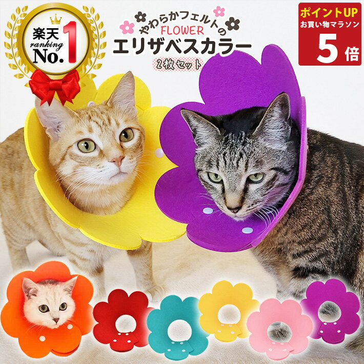 【20%OFF11日1:59まで】 エリザベスカラー 猫 ソフト 【2枚セット】 エリザベスカラー 犬 柔らか フェルト フラワー エリカラ 軽量 傷の保護 ストレス軽減 カラー S M L オレンジ レッド ライトブルー イエロー ピンク パープル/フェルトフラワーエリカラ 2枚組