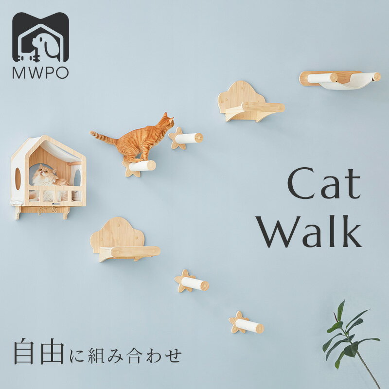 【25%OFF&スーパーセール限定】MWPO キャットウォーク 壁掛け式 木製 天然木 省スペース キャットタワー キャットステップ ハンモック 猫ハウス 星 雲 透明 mwpo-875