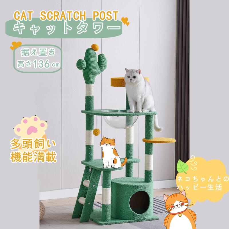 【スーパ-SALE限定×10%OFF】キャットタワー 透明宇宙船付き サボテン猫タワー キャット 据え置き型 爪とぎ 麻紐 サボテン 省スペース スリム キャット ハウス透明宇宙船 運動不足 階段 ストレス解消 おしゃれ 家族 ペット