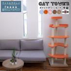 (タイムセール中) キャットタワー 据え置き 国産 オレンジ ピンク ベージュ
