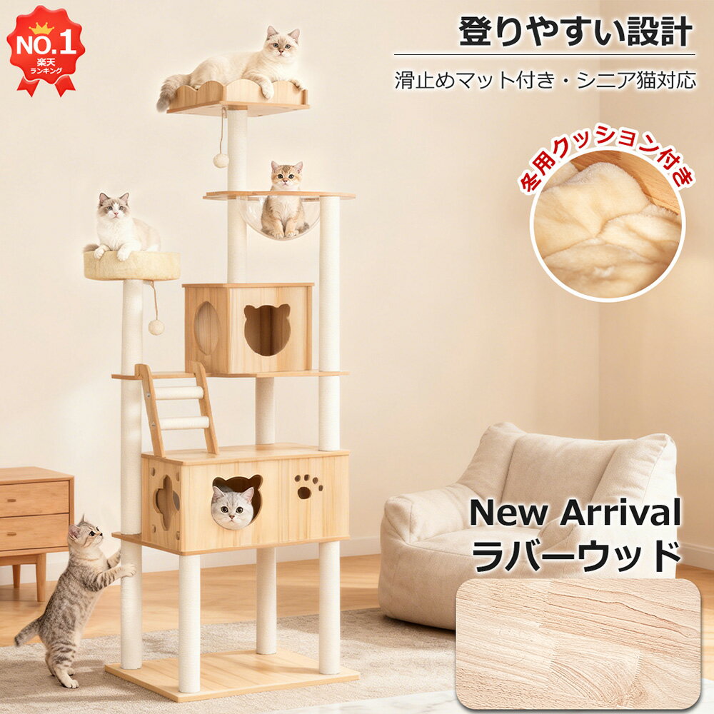 キャットタワー 木製 大型 据え置き 天然木 スリム おしゃれ 木登り 多頭飼い 大型猫 半完成品 キャットツリー シニア 高さ147cm 猫タワー 中型 シンプル 天然木材 隠れ家 爪とぎ 安定 ねこ 運動不足解消 麻紐 猫ハウス マット ベッド インテリア