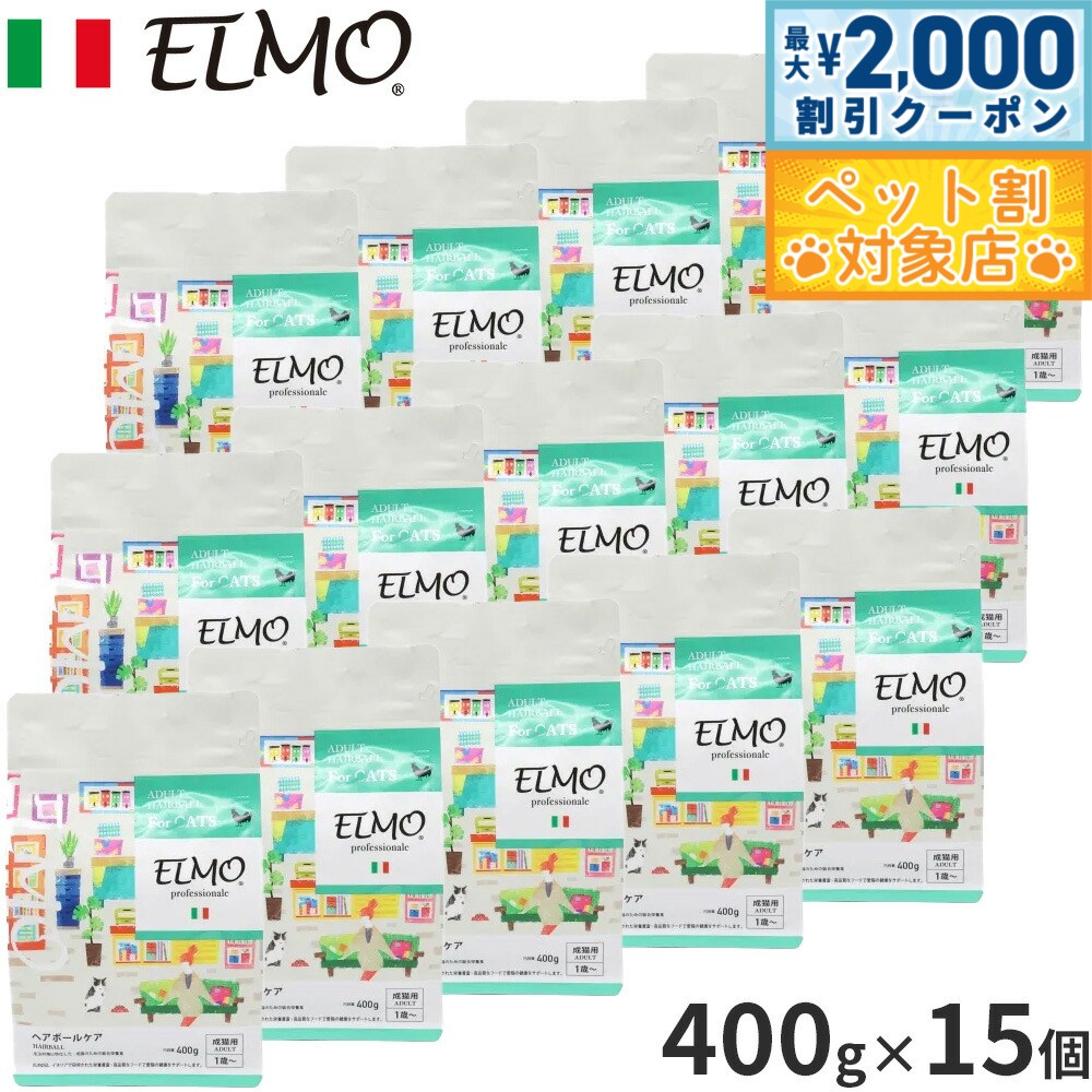 【最大2000円OFFクーポン!&店内ポイント最大56倍!本日限定!】エルモ ELMO キャットフード ヘアボールケア プロフェッショナーレ 400g×15個 無添加 成猫 ドライフード