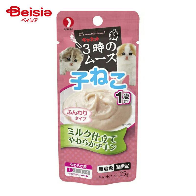ペットライン キャネット3時のムース子ねこミルク仕立25g ×12個 | キャットフード ウェットフード 子猫 ムース ミルク ペットライン キャネット 3時のムース パウチ 国産 まとめ買い 箱買い ねこ ネコ