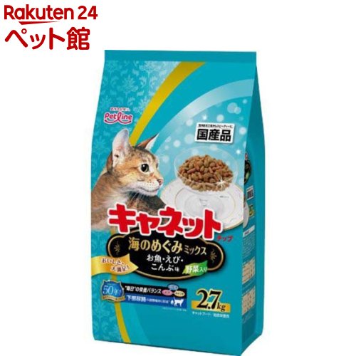キャットフード ペットライン キャネットチップ 海のめぐみ 2.7kg 猫 ドライフード 成猫 お魚 猫 エビ こんぶ 野菜ミックス 栄養 サクサク カリカリ 食べやすい