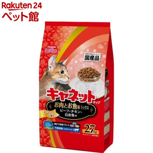 キャットフード ペットライン キャネットチップ 肉魚 ミックス 2.7kg ペット用品 猫 ドライフード 成猫 カリカリ 国産 栄養バランス 美味しい ビーフ チキン 白