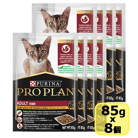 PRO PLAN プロプラン キャット パウチ 成猫用 やわらかチキン グレービー仕立て 85gx8個 キャットフード ウェットフード ネコポス可8個まで[M便 1/8] SET 正規品