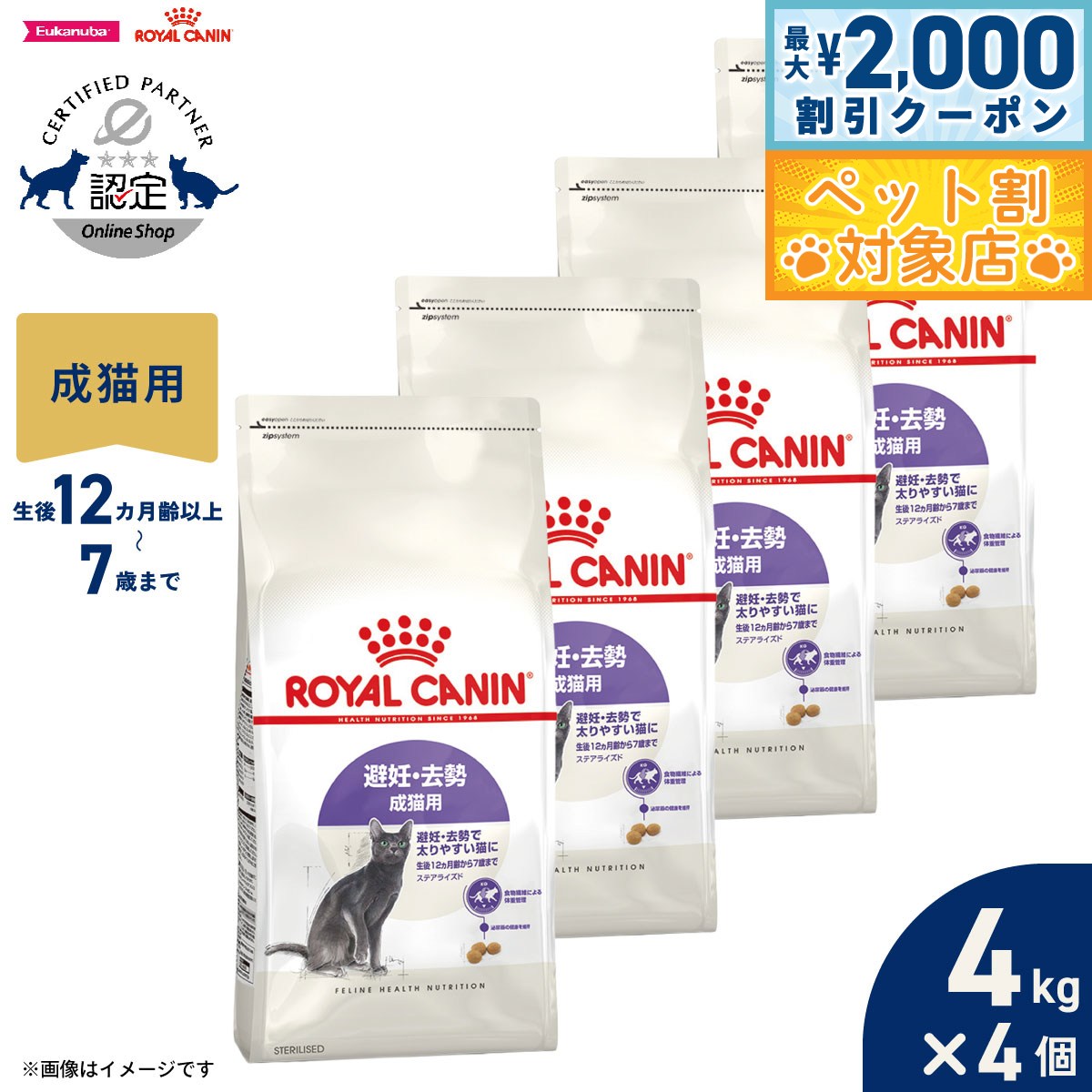【最大2000円OFFクーポン!&店内ポイント最大62倍!本日限定!】ロイヤルカナン 猫 キャットフード フィーラインヘルスニュートリション ステアライズド 4kg×4個 正規品 避妊 去勢で太りやすい猫専用フード 成猫用