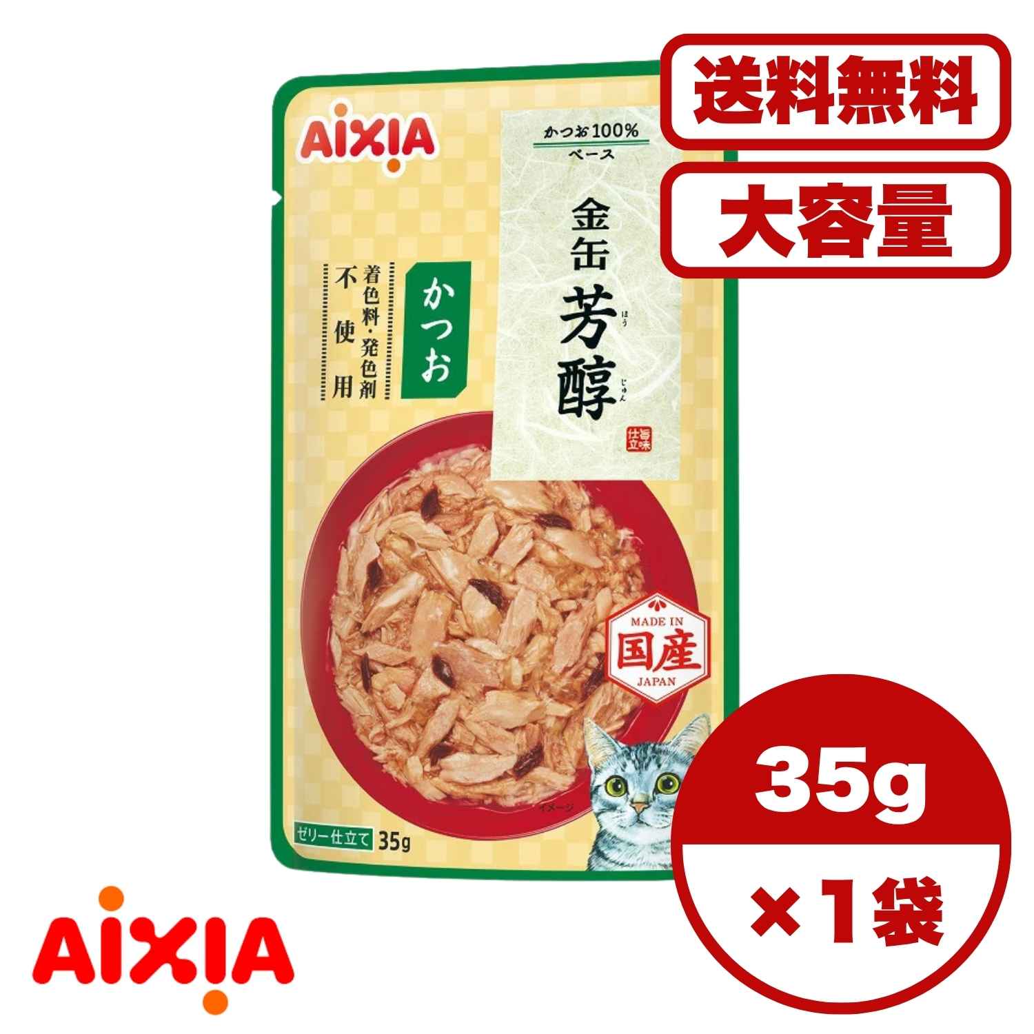 キャットフード ウェット【送料無料 セット販売 1個 8個 16個 60個/約1ヶ月分 】キャットフード ウェット パウチ 猫の餌 総合栄養食 水分補給[アイシア]金缶 芳醇 かつお 35g